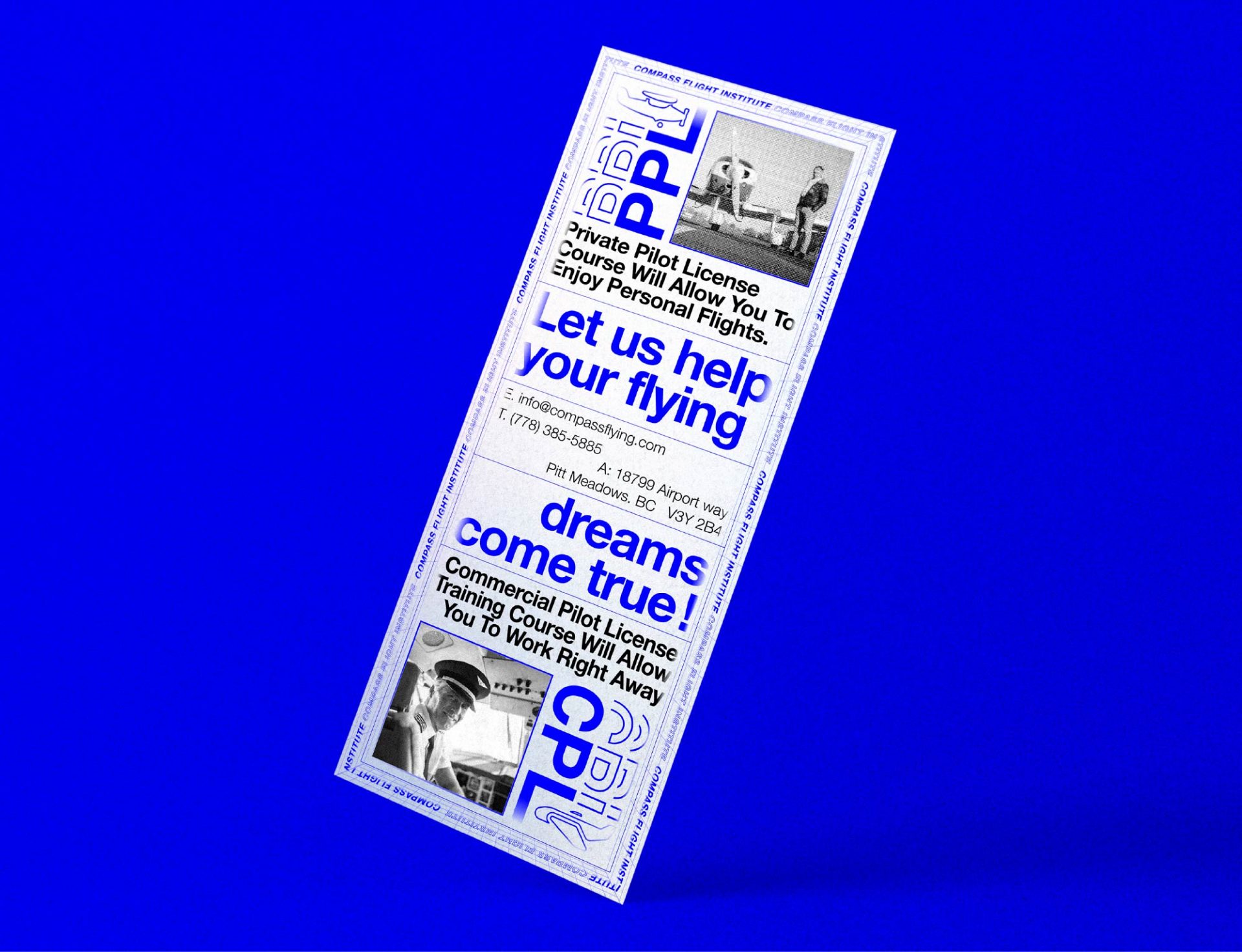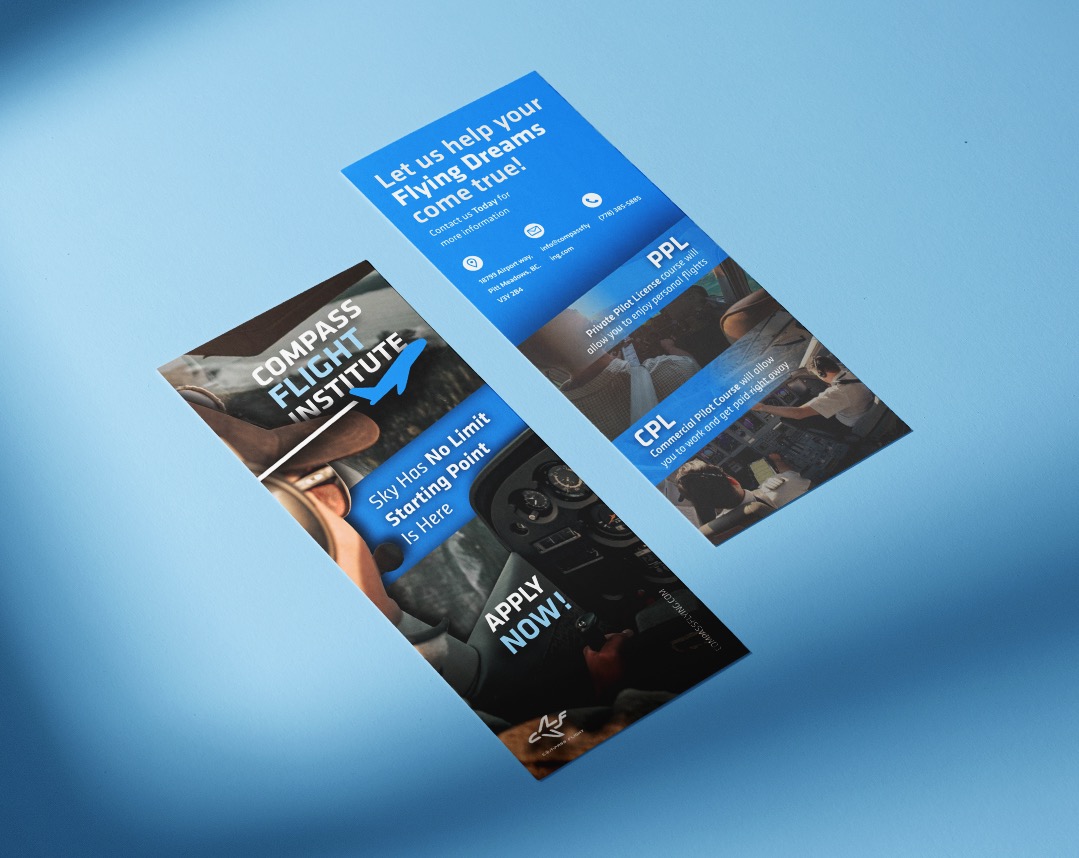 Compass Flight Institute reached out to us to create a stationary brochure for their brand’s soft launch at the flight exhibition booth. Since the brand is still under development, we came up with two designs targeting two different segments of potential clients. Our goal is to collect customers’ feedback and response to better evaluate brand positioning to create a successful brand.